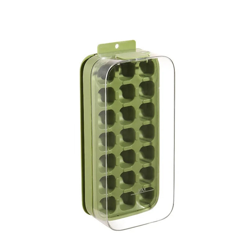 Make clean, uniform ice cubes at home with this 21-compartment ice tray. The flexible mold helps cubes release easily, while the lid keeps odors out and prevents spills, so your freezer stays neat and your ice stays fresh.